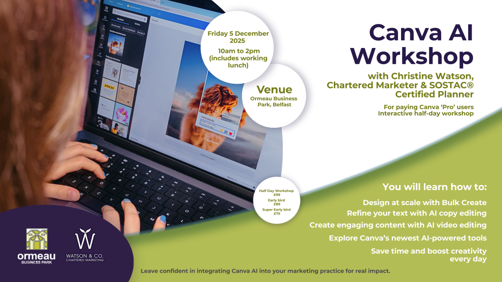 Canva AI Workshop Training – Ormeau Business Park, Belfast – Friday 5 December 2025